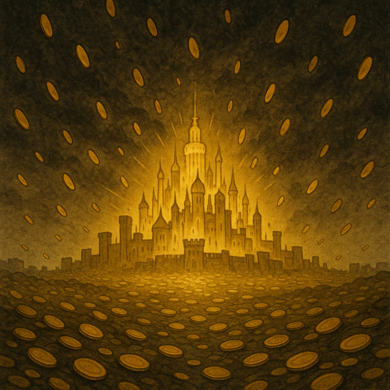 金貨が降り続けるため、金銭そのものの価値が大暴落したのだ。昨日まで貴重だったはずのものが、今日はただの金属のかけらに過ぎない。街には無数の金貨が転がり、人々は拾うことすらやめてしまった。