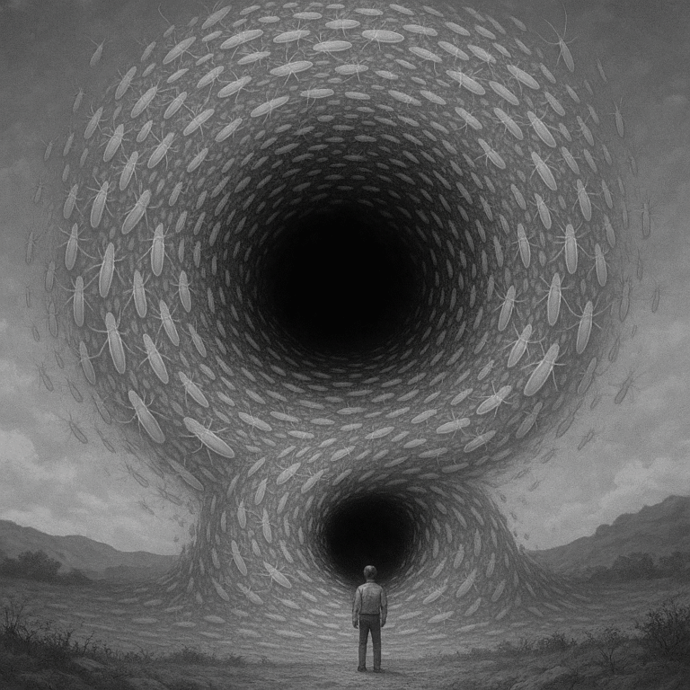 かつて古代の遺跡が発掘された場所。そこで虫たちは巨大な渦を描き始めた。渦は次第に形を変え、やがて一つの門のような構造を成した。