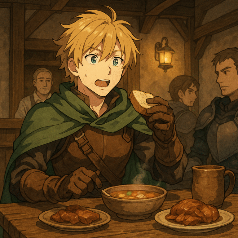 気づけば隣の席に冒険者が二人座っていた。彼らも無言で料理を味わっている。顔はどこか見覚えがあった気がするが、声をかける気にはならなかった。ただ同じ夢を見ている仲間のように思えた。