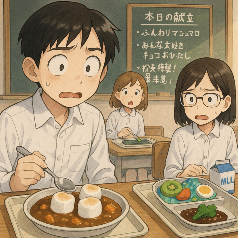 俺の隣で、クラスの委員長・佐藤がスプーンを持ったまま固まっている。その日の給食のメニュー表にはこう書かれていた。