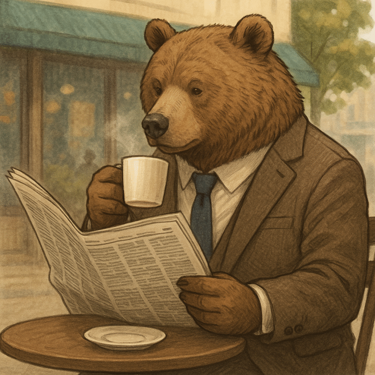 しかし翌朝。出勤途中の駅前に、その熊がいた。カフェのテラス席で新聞を読みながらコーヒーを飲んでいた。