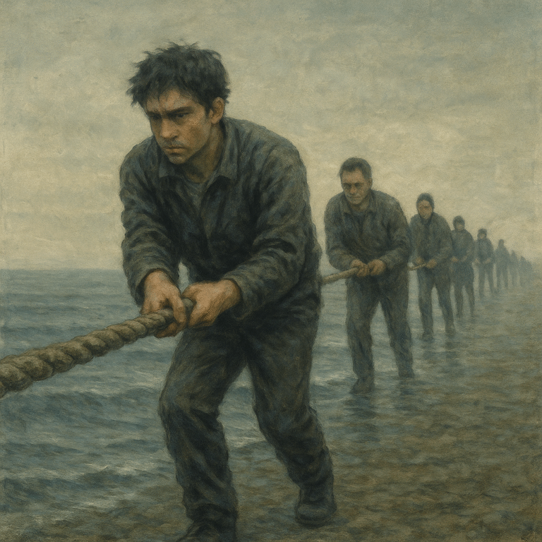 夢の中では、俺はいつもロープを握っている。先は見えない。一人で引っ張っていることもあれば、他にも一緒に引っ張っている人がいることもある。その人たちは知り合いではない。みんな黙ってロープを引いている。