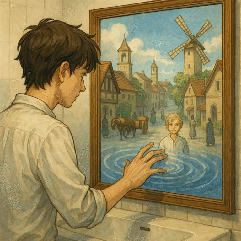 気づけば俺は、鏡に手を伸ばしていた。指先が冷たい水に触れたような感覚。そして、抵抗もなく、そのまま鏡の中に沈んだ。