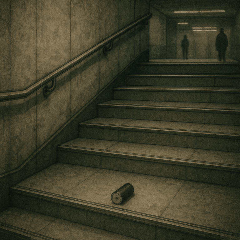 残業で終電になり、駅は人もまばら。あの階段を降りると――海苔巻きが戻っていた。しかも、二本になっている。