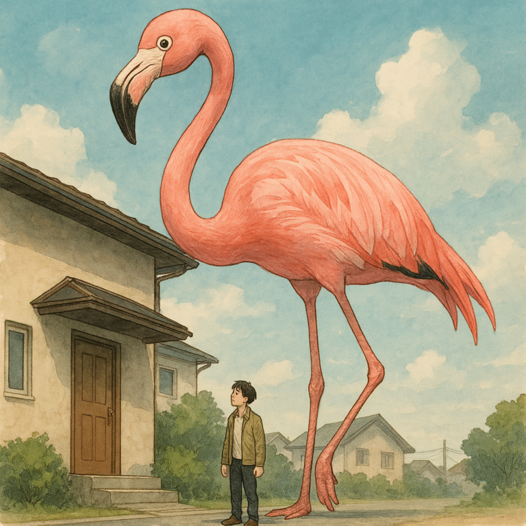 俺の家の玄関前に、巨大なフラミンゴが立っていた。