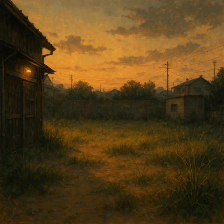 夕暮れの光の中、空き地の草だけがざわざわと揺れていた。