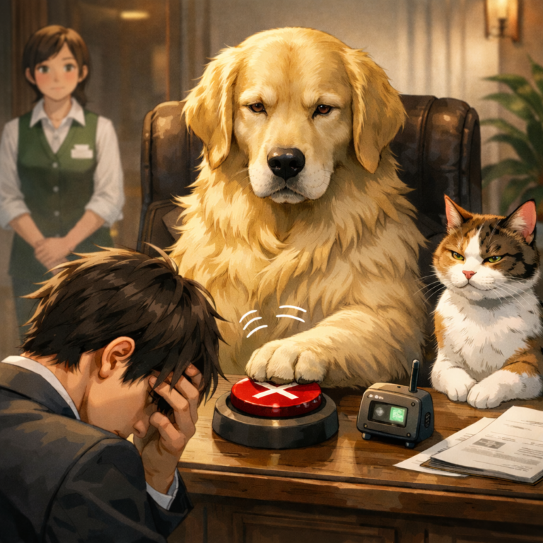 僕の番が来て、個室に通されると、そこには一匹のゴールデンレトリバーが座っていました。